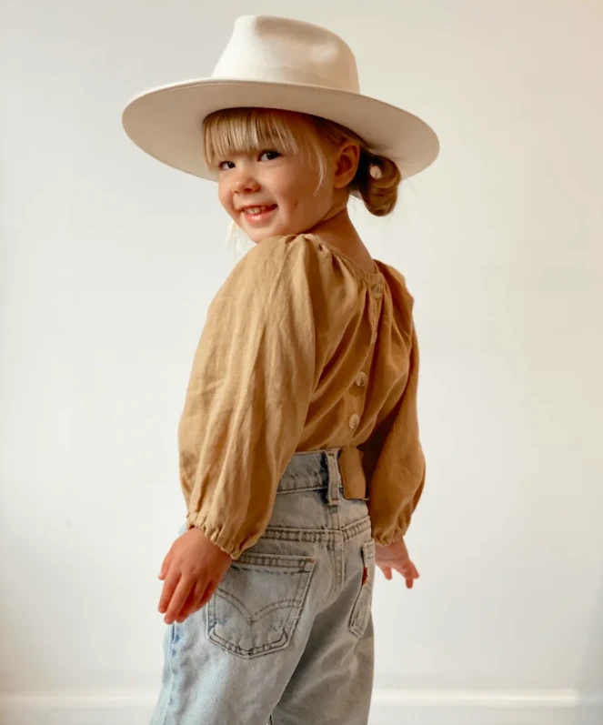 With our founders own little adventurer as our very first muse, the ‘Ford’ is camp the labels OG hat. Made of 100% Australian wool, the Ford is a stiff brimmed wool fedora with a high rigged crown design featuring complimenting gross grain edging, a wide ribbon detail and finished with x stitching.
