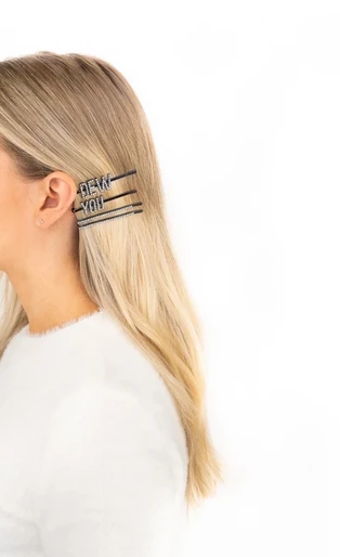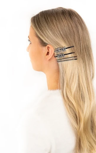Clip your hair… not your wings. The Dew You Barrette Set includes four rhinestone-studded barrettes –– one that spells “Dew”, another that spells “You”, and two sleek bobby pins. Because dewin’ you is the only way to go.