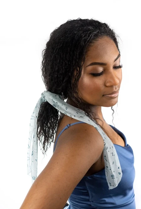 The Knotty – High Horse is a new take on a classic bandana print. Blue, light, and unique, with a long flowing scarf, this Dew is fresh and a little cocky.