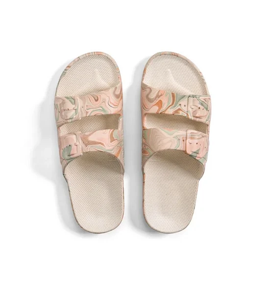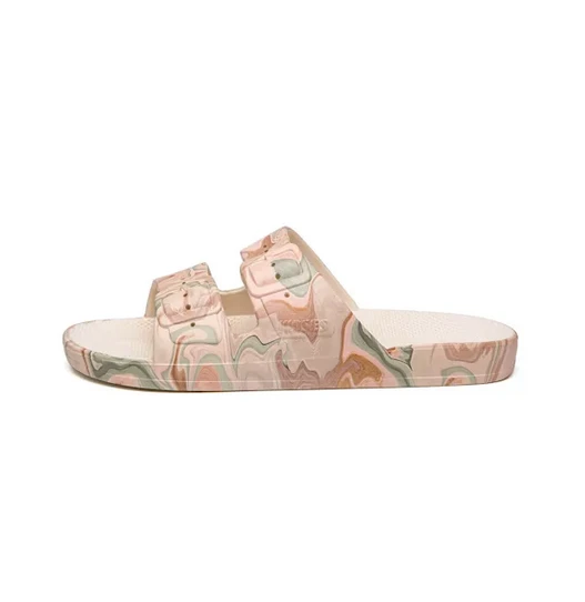 At Freedom Moses we’re all about celebrating summer 365 days a year. From am to pm, our GAIA STONE vegan slides are injected with air so you feel like you’re walking on a cloud. Whether chilling at the beach or just hanging out, we’re also available for your whole crew, from kids slides to women’s slides and men’s slides, if you’re into prints, glitters, metallics or basic colors we’ve got you covered.