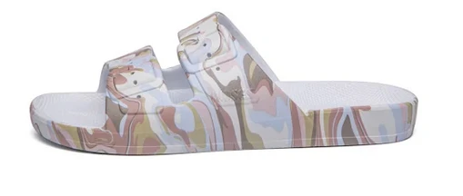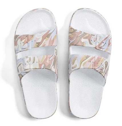 At Freedom Moses we’re all about celebrating summer 365 days a year. From am to pm, our SONORA WHITE vegan slides are injected with air so you feel like you’re walking on a cloud. Whether chilling at the beach or just hanging out, we’re also available for your whole crew, from kids slides to women’s slides and men’s slides, if you’re into prints, glitters, metallics or basic colors we’ve got you covered.