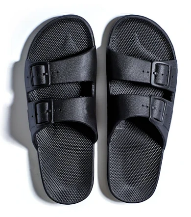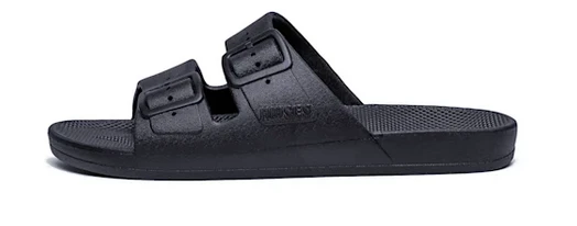 At Freedom Moses we’re all about celebrating summer 365 days a year. From am to pm, our BLACK vegan slides are injected with air so you feel like you’re walking on a cloud. Whether chilling at the beach or just hanging out, we’re also available for your whole crew, from kids slides to women’s slides and men’s slides, if you’re into prints, glitters, metallics or basic colors we’ve got you covered.