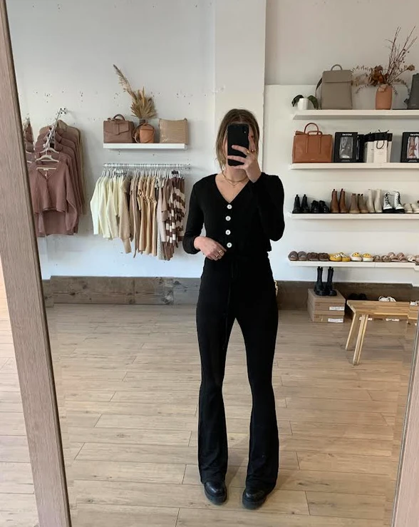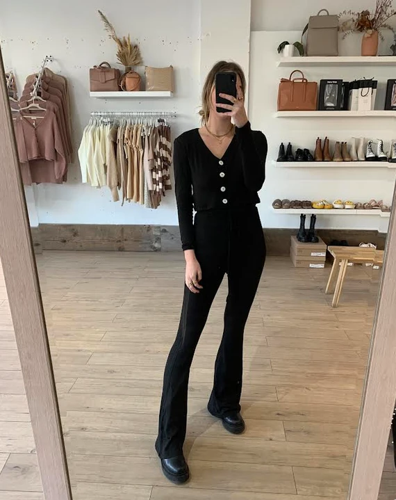 Glamorous Women’s Black Melange Ribbed Tie Waist Slim Joggers. We are loving these super chic, comfy brown joggers. Featuring ribbed pattern and slim fit these joggers will look great on you! Perfect for a chic on trend daytime look this autumn. Style with matching co ord brown melange button front long sleeve top for the perfect autumnal look.