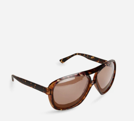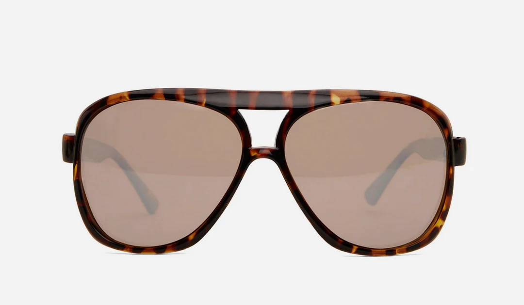 Wide frame aviator sunglasses with polarized lens.