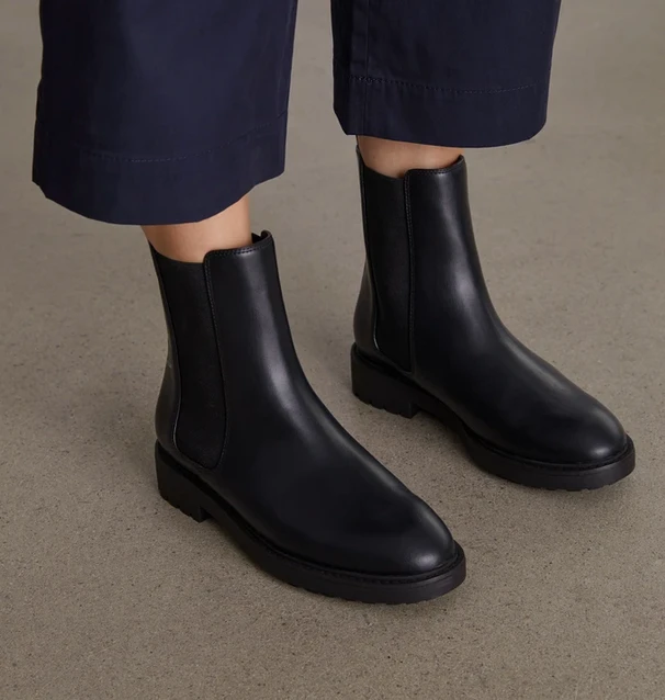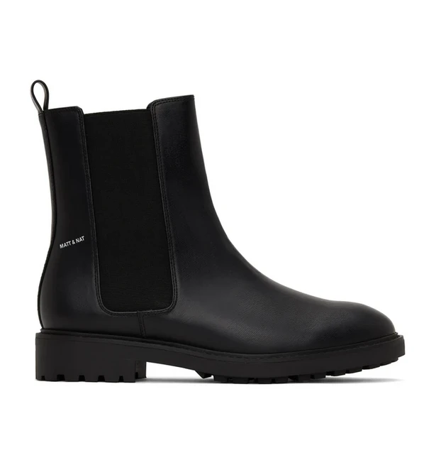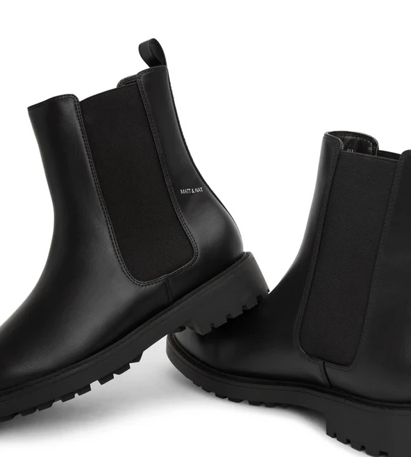 Women’s Chelsea boot with wide elastic gores for comfort and ease. Made with biodegradable material.