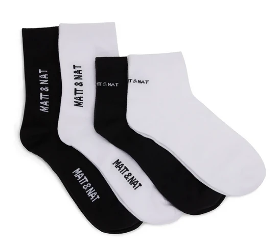 - Two ankle socks with a single logo design. MATT & NAT logo at heel. (1pcs Black, 1pcs White)