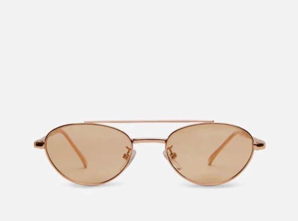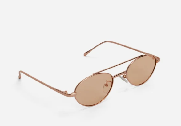 Oval-shaped frame sunglasses with a wide frame and polarized lens.