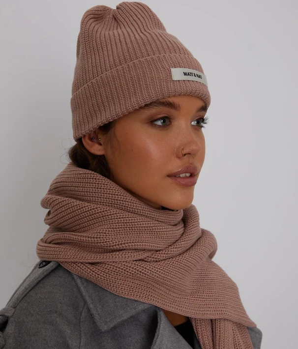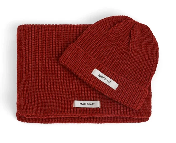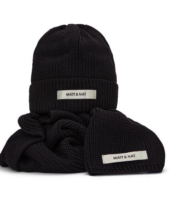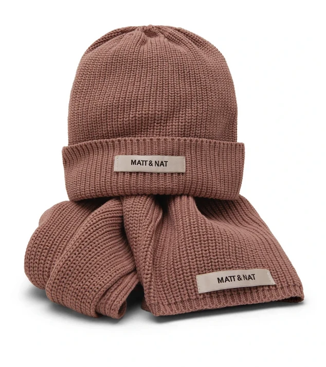 Hat and scarf set with logo label detail. Made of knitted cotton thread to keep warm and cozy.