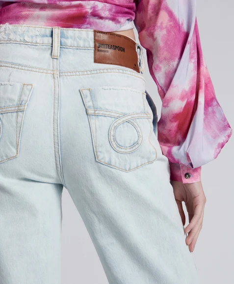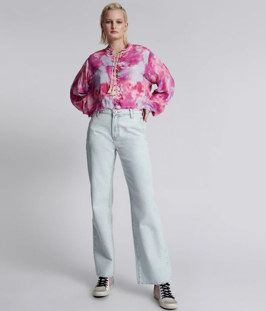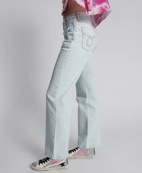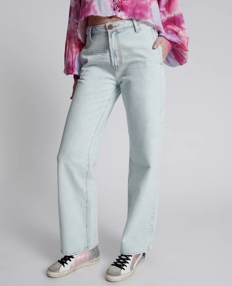 PAINTED FLORENCE IS A SUPER LIGHT-BLUE ALMOST WHITE FADED DENIM WASH WITH UNIQUE ONE-OF-A-KIND PAINTED SPLATTER DETAILS & TRASHED FINISHINGS. LIMITED EDITION.