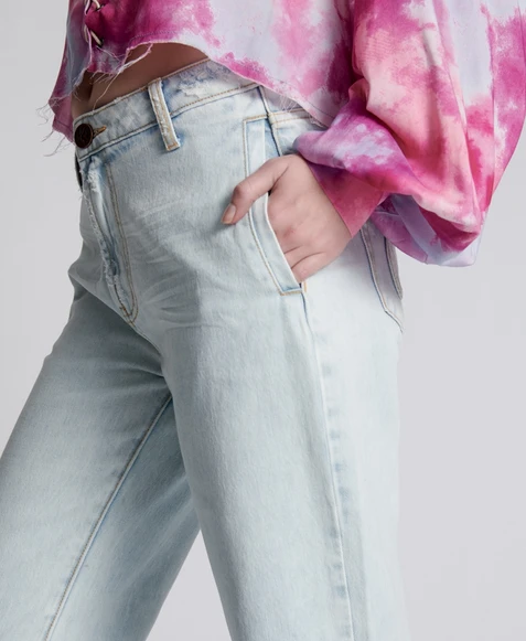 THE RYDERS, OUR NEW HIGH WAIST WIDE LEG JEAN. FITTED AROUND THE WAIST AND HIPS WITH A RELAXED WIDE FULL LENGTH FIT ON THE LEG. NEW TAILORED STYLE WELTED FRONT POCKET DETAILS.