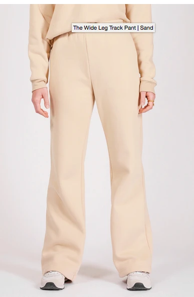 Our High Rise Track Pants feature an extra-long 33″ inseam and a wide leg for that perfect oversized fit. Made in our signature fleece blend, these Track Pants will keep you cozy all day, every day. We recommend sizing down if you’re looking for a more fitted leg.