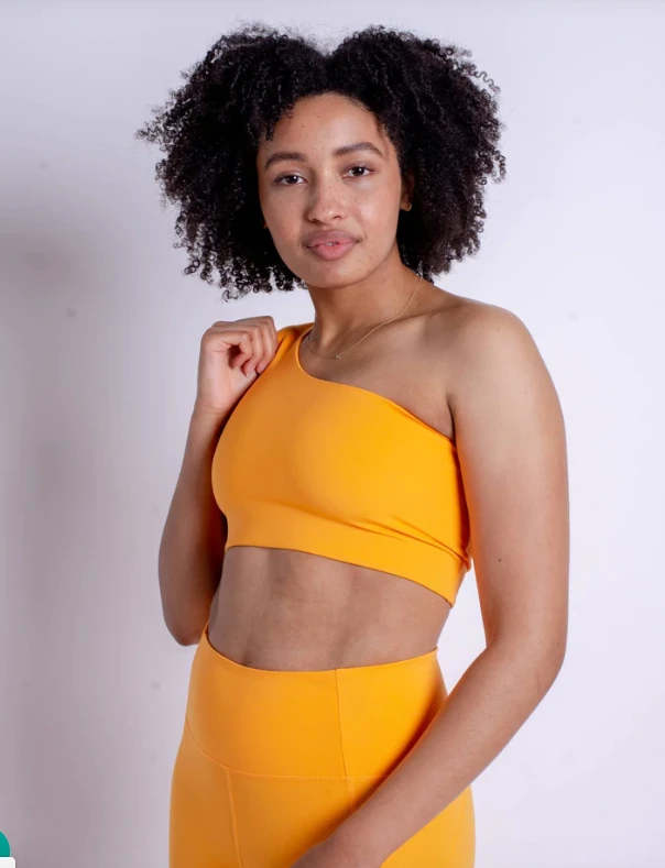 Just a super versatile one shoulder bra that goes great with any bottoms that are calling out to you — leggings, sweats, bike shorts, jeans, you name it.