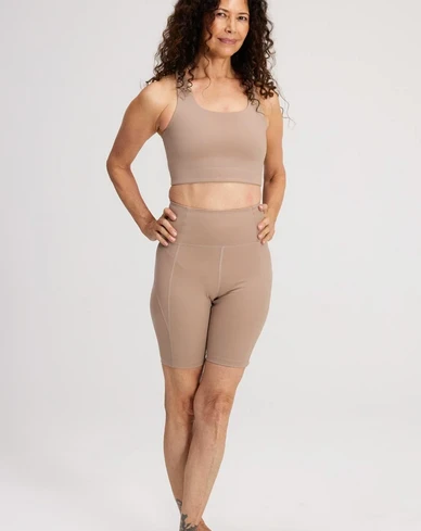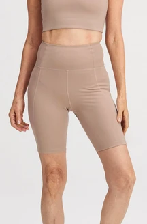 You donโt have to bike to wear bike shorts, but biking cuts down on greenhouse gas emissions, reduces road congestion, and is a pollution-free mode of transport… just saying. Made from recycled water bottles for working out and looking cute.
