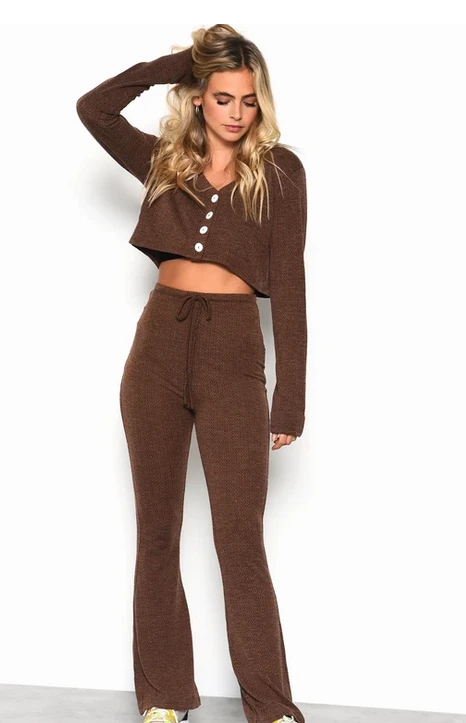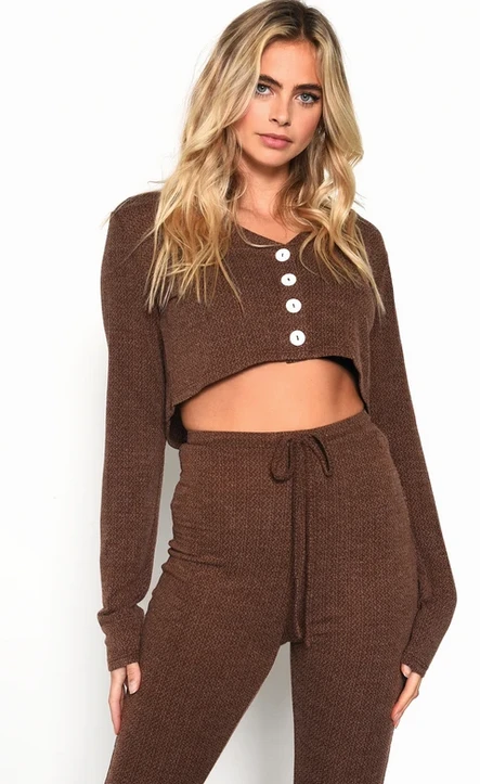 Glamorous Brown Melange Button Front Long Sleeve Crop Cardigan. This jumper is the perfect piece to add to the collection this Autumn. Featuring a button front and relaxed fit material, we love this jumper here at Glamorous. The crop jumper with long sleeves will look great on you! Pair with matching co-ord brown melange joggers and chunky trainers for an effortless chic daytime look.