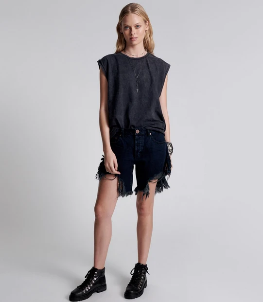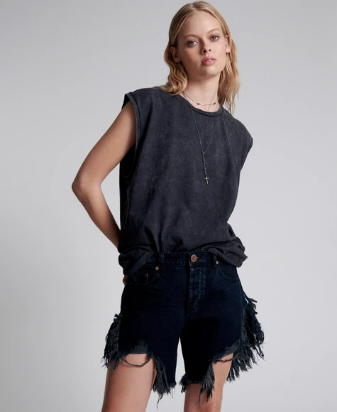 FRANKIES ARE OUR BEST TWIST ON A BOYFRIEND SHORT. LOW WAIST AND LONGER LENGTH, THEY FIT LIKE A SLOUCHY BOYFRIEND SHORT BUT HAVE BEEN DESIGNED TO EXPOSE YOUR OUTER THIGH. WITH CUT AWAY SIDE SEAMS THEY FLATTER ALL LEG SHAPES.