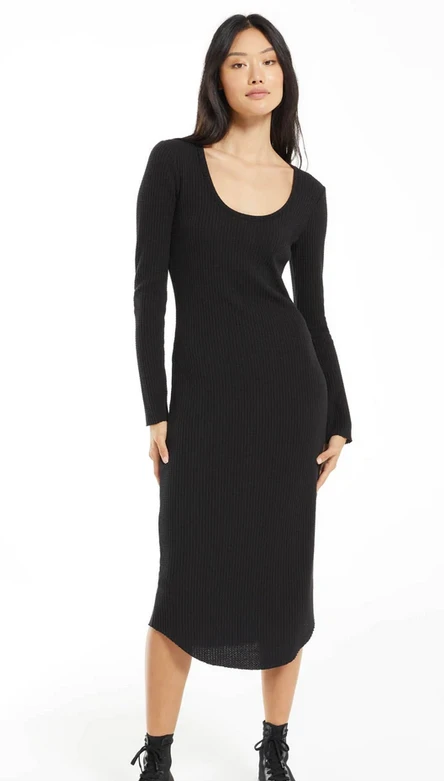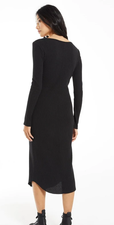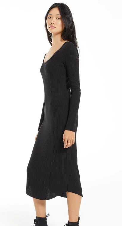 The Zoey Waffle Midi Dress is effortlessly stylish with the added bonus of being extra cozy. Made in our Large Waffle brushed thermal fabric, it’s soft but elevated. The Zoey pairs perfectly with booties. Details include long sleeved, crew neckline, midi length with a shirttail hemline and subtle raw edge detailing
