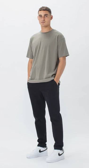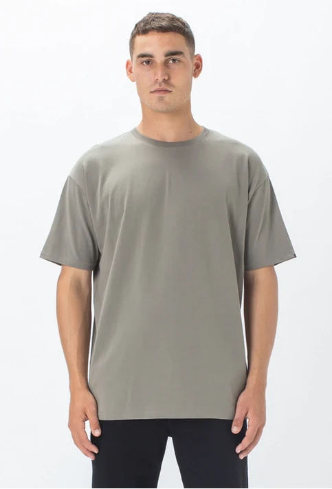 The ZANEROBE Box Tee in Dk Moss -Classic relaxed tee silhouette. Complete the fit with the ZANEROBE Kyoto Chino.